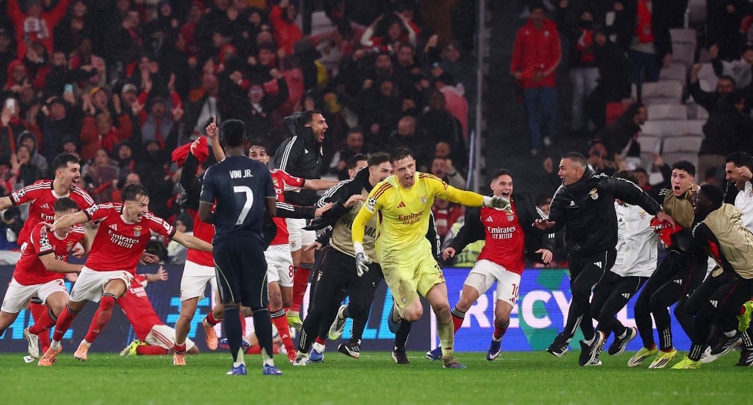 أطاح بنفيكا البرتغالي بضيفه ريال مدريد الإسباني في مواجهة مثيرة حكمت على الفريقين بخوض الملحق المؤهل إلى ثمن نهائي دوري أبطال أوروبا