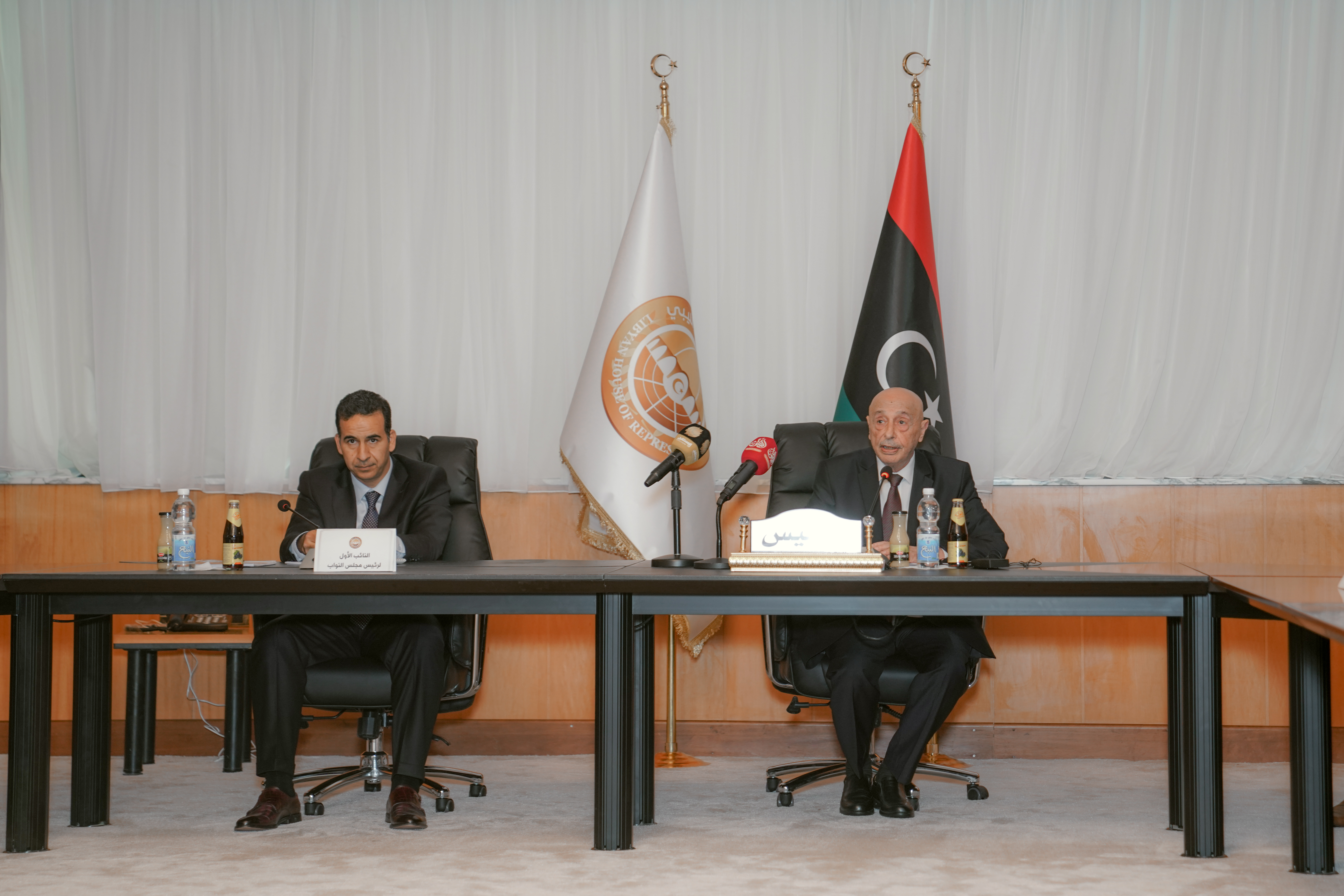 عقد رئيس مجلس النواب المستشار عقيلة صالح، الثلاثاء، اجتماعاً موسعاً بحضور رئيس الوزراء فتحي باشاغا ونائبه علي القطراني وعدد من وزرائه، وعدد من المؤسسات السيادية والرقابية