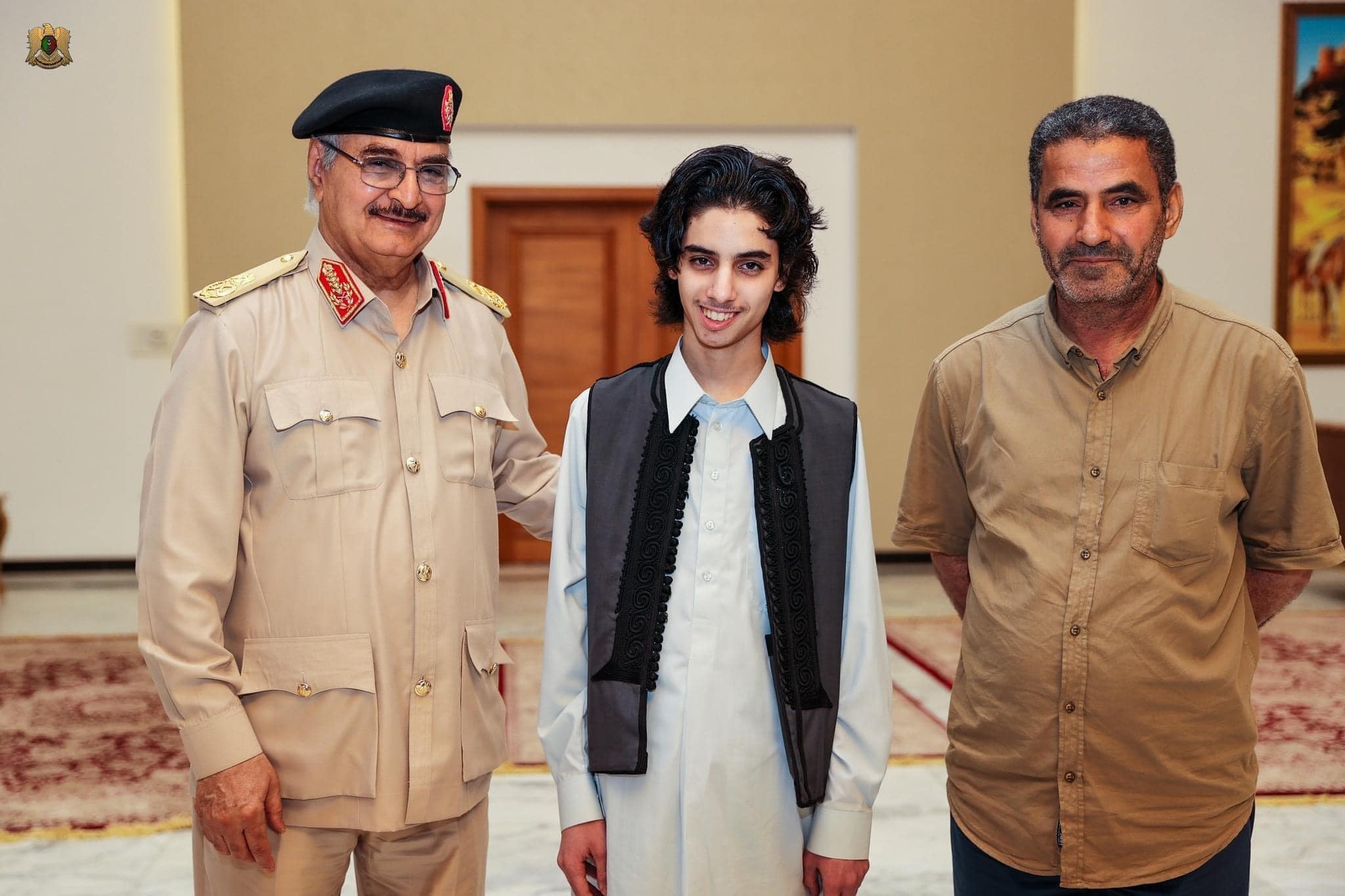 التقى القائد العام للقوات المسلحة المُشير "خليفة حفتر" بمكتبه في الرجمة الطفل "مصطفى البركولي" وأسرته، وذلك للاطمئنان على صحته، بعد تحريره عن طريق الوحدات العسكرية من خطفٍ استمر لأكثر من سنة
