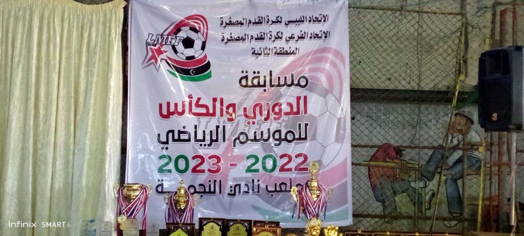 توج فريق السواعد لكرة القدم المصغرة بالبطولة الأولى للموسم 2023/2022، وذلك بعد تفوقه في المباراة النهائية على فريق السد بركلات الترجيح، بعد انتهاء الوقت الأصلي بالتعادل الإيجابي بهدف لكل فريق. اللقاء أقيم مساء يوم السبت على ملعب صالة الألعاب بنادي النجمة، بصافرة تحكيمية تكونت من احمد الفيتوري واحمد الساحلي ، و حضر القاء العديد من المدربين ورؤساء الأندية والمهتمين بالشأن الرياضي
