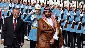 حيث استقبل أردوغان الأمير محمد في القصر الرئاسي بالعاصمة أنقرة ، وجرى عزف النشيدين الوطنيين لتركيا والمملكة العربية السعودية