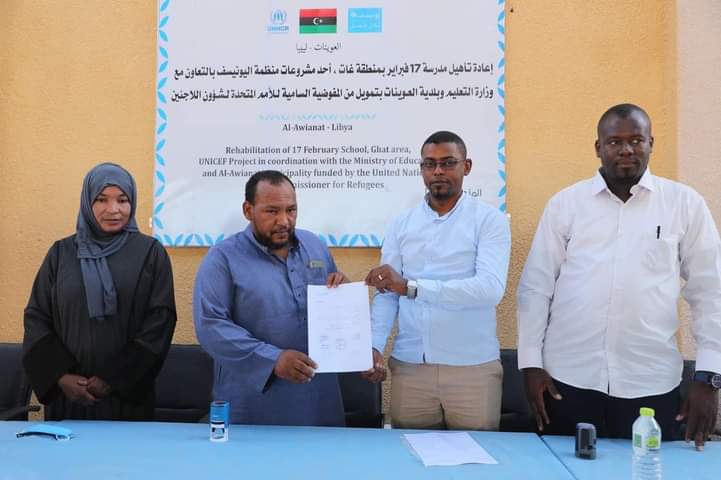 أقيمت بمدينة غات احتفالية قامت بها مفوضية السامية للاجئين ، واليونيسف بليبيا ، وبالتعاون مع وزارة التعليم لتسليم مدرسة 17 فبراير بعد اختتام أعمال تجديد وإعادة التأهيل