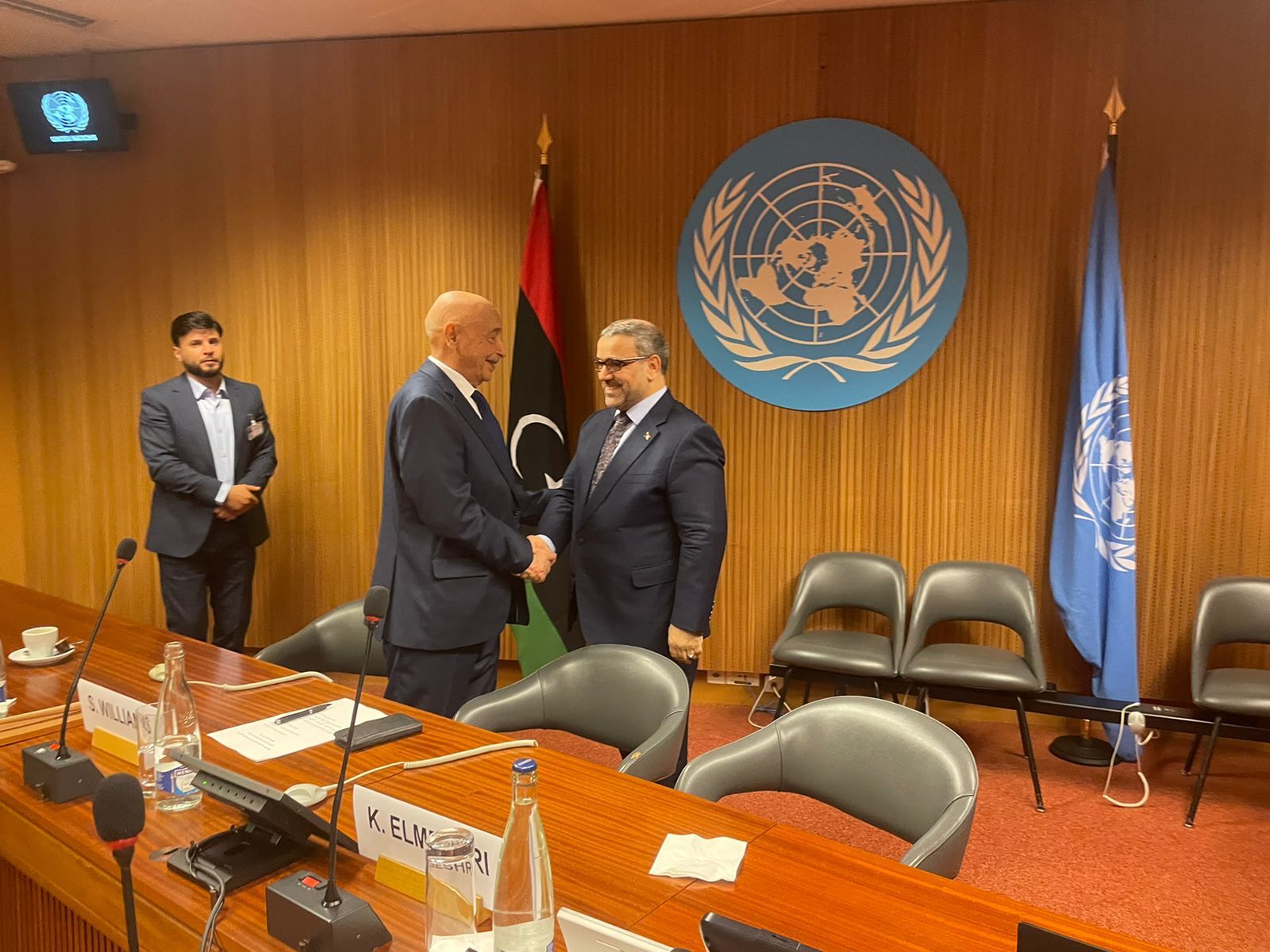 أعلن رئيس المركز الإعلامي لرئيس مجلس النواب عبد الحميد الصافي، انطلاق الاجتماعات التشاورية بين رئيس مجلس النواب، المستشار عقيلة صالح، ورئيس مجلس الدولة، خالد المشري، والوفدين المرافقين لهما في قصر الأمم المتحدة بجنيف، بحضور المستشارة الخاصة للأمين العام للأمم المتحدة بشأن ليبيا ستيفاني وليامز.