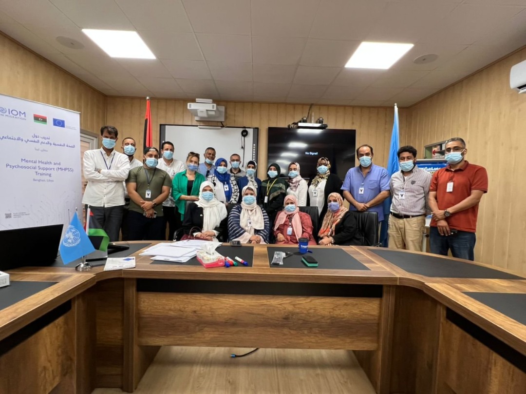أجرت المنظمة الدولية للهجرة هذا الأسبوع في بنغازي تدريبا لمدة يومين حول الصحة النفسية والدعم النفسي الاجتماعي المجتمعي حيث تم استهداف 19 ممثلا عن مراكز الرعاية الصحية الأولية ومنظمات المجتمع المدني بما في ذلك الهلال الأحمر الليبي، و علم النفس لمستشفى بنغازي للأمراض النفسية وجامعة بنغازي ومنظمة الميزان و المنظمة الدولية لحماية الأطفال والأشخاص ذوي الإعاقة وذلك بدعم من الاتحاد الأوروبي، وقد وفر التدريب للمشاركين فهمًا للصحة العقلية والدعم النفسي الاجتماعي المفهوم والإطار الرئيسيين، والنهج المجتمعي، والأدوات والموارد، ومهارات الاتصال الداعمة
