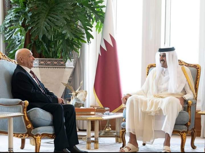 إستقبل سمو أمير دولة قطر الشيخ تميم بن حمد آل ثاني، رئيس مجلس النواب المستشار عقيلة صالح والوفد المرافق له ، بحضور رئيس مجلس الشورى القطري حسن بن عبدالله الغانم