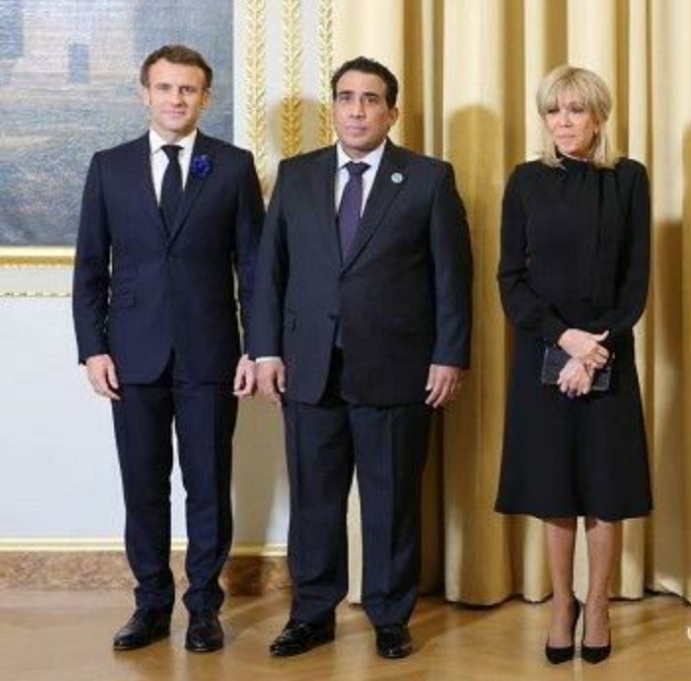 التقى الرئيس الفرنسي إيمانويل ماكرون، مع رئيس المجلس الرئاسي محمد المنفي بقصر الإليزيه، وذلك عقب مشاركته في منتدى باريس للسلام وقال المجلس الرئاسي في بيان له يوم الجمعة، أن المنفي شارك في افتتاح فعاليات منتدى باريس للسلام، وشارك في إفتتاح فعاليات المنتدى رؤساء الدول والحكومات، إضافةً إلى ممثلين عن المنظمات الدولية