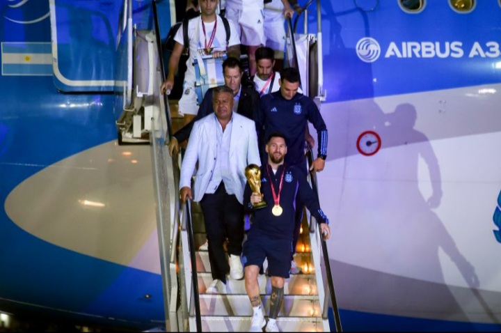 حطّت طائرة المنتخب الأرجنتيني بطل كأس العالم FIFA قطر 2022 الرحال في العاصمة الأرجنتينية بوينوس آيرس