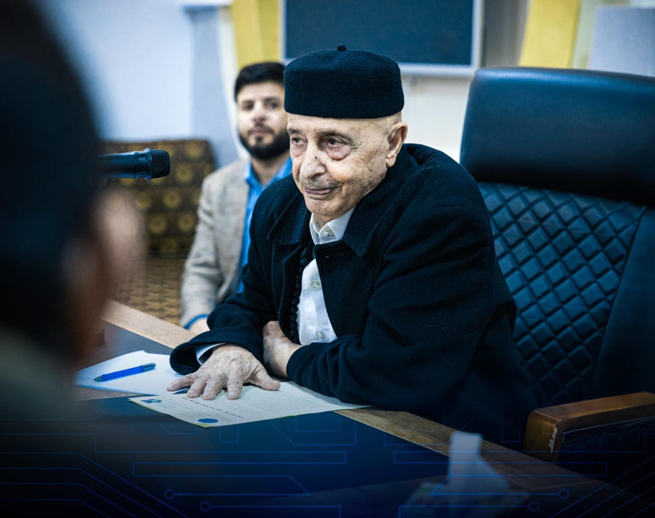 أستقبل رئيس مجلس النُواب المُستشار عقيله صالح بمكتبه في مدينة القبة وكيل وزارة الداخلية فرج اقعيم و لفيفًا من قيادات الوزارة ومُدراء الأمن وكبار الضُباط والمُستشارين للإطلاع على أوضاع مُديريات الأمن والمجهودات المبذولة في ظل عدم توفر الإمكانيات المادية ، وحقوق منتسبي الشرطة التي تدعم قيامهم بالوفاء بواجباتهم نحو الوطن والمواطن