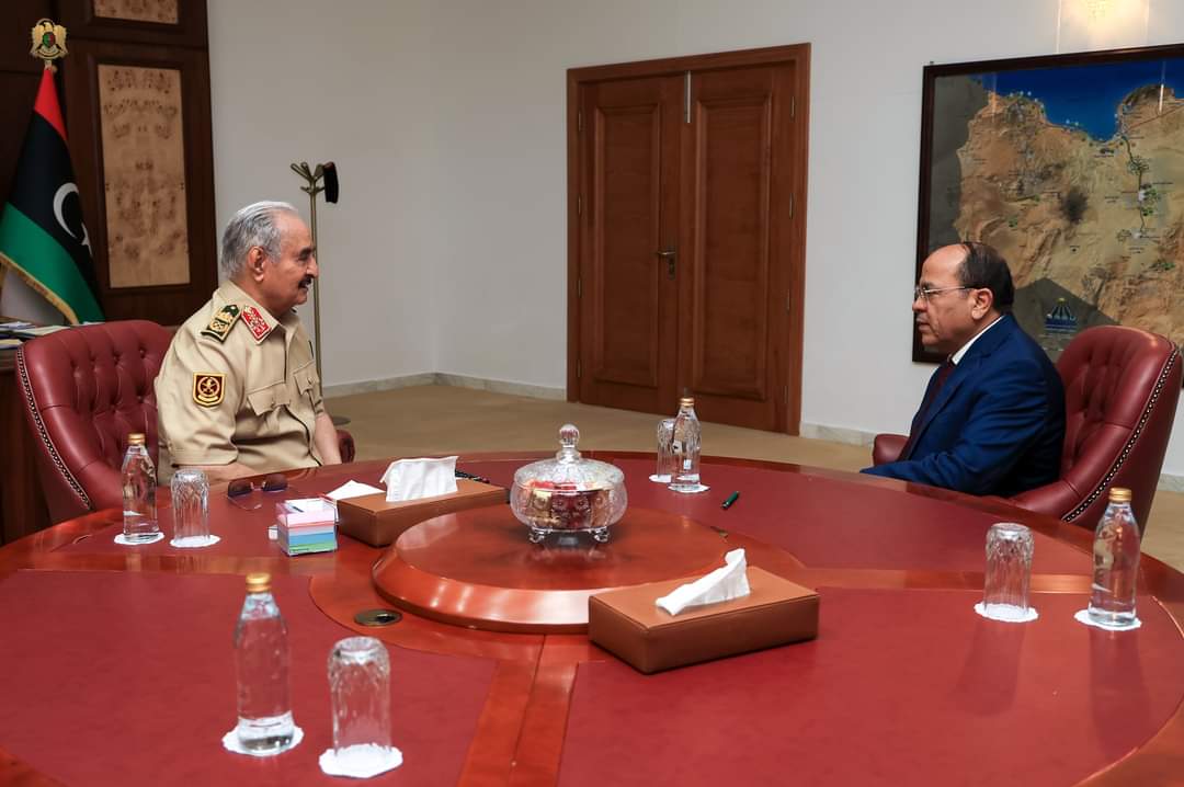 التقى القائد العام للقوات المُسلحة العربية المُشير خليفة حفتر، في مكتبه بمقرّ القيادة العامة رئيس لجنة إدارة شركة الخليج العربي للنفط محمد بن شتوان
