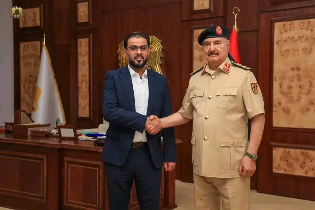 التقى القائد العام للقوات المسلحة العربية الليبية المشير أركان حرب خليفة أبوالقاسم حفتر برئيس مجلس الوزراء أسامة حماد في مكتبه بمقر القيادة العامة تمحور اللقاء حول مناقشة آخر الأحداث والمستجدات السياسية على الساحة المحلية ويأتي هذا الاجتماع في إطار الجهود المبذولة لمتابعة التطورات السياسية والعمل على تعزيز الاستقرار في البلاد وأشار مكتب إعلام القيادة العامة للقوات المسلحة العربية الليبية إلى أهمية هذا اللقاء في التنسيق بين القيادة العامة ومجلس الوزراء لمواجهة التحديات الراهنة وتحقيق الأهداف الوطنية المشتركة