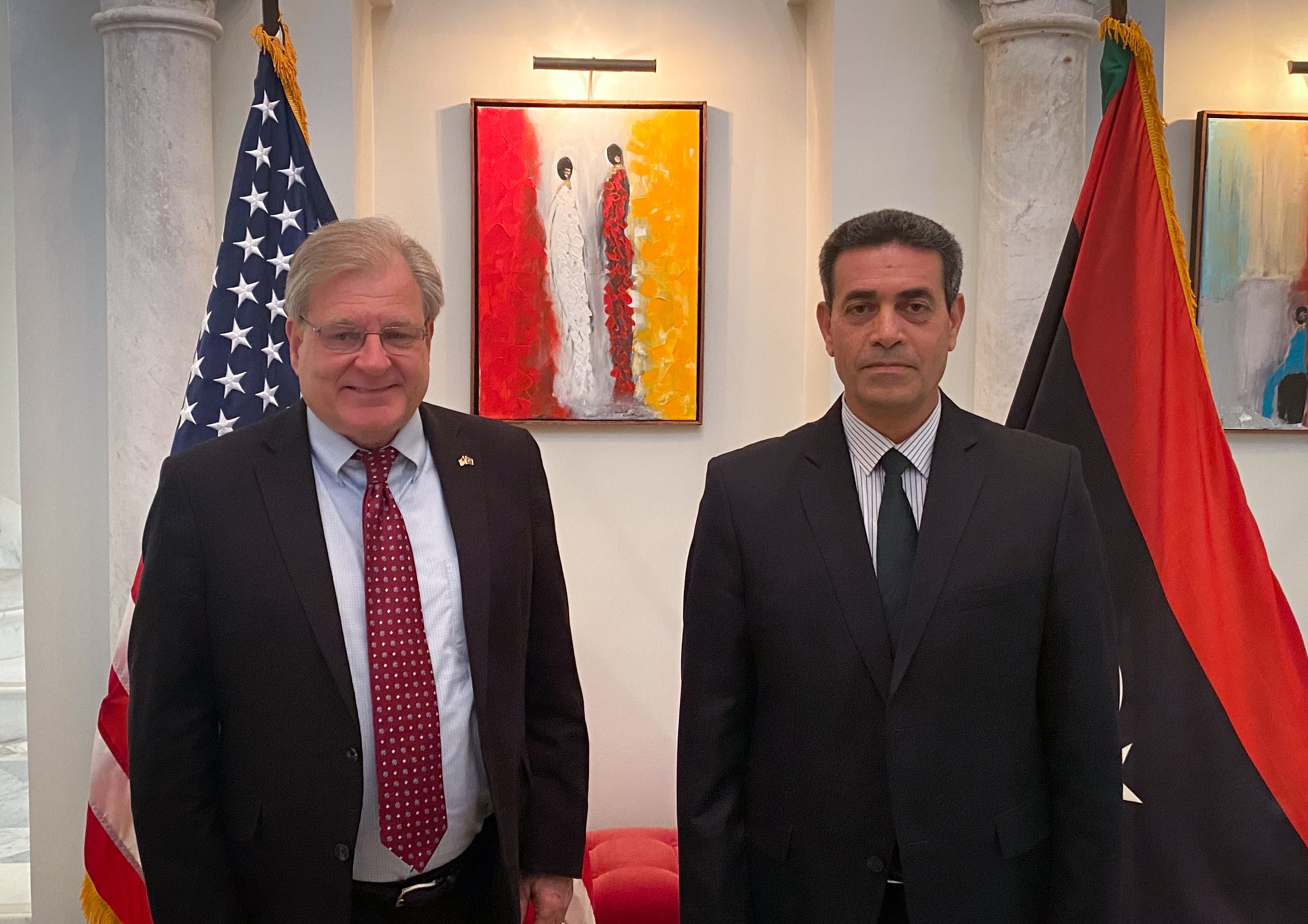 بحث السفير الأمريكي لدى ليبيا ريتشارد نورلاند، مع رئيس المفوضية العليا للانتخابات عماد السايح، مستجدات العملية السياسية في ليبيا. السفارة الأمريكية في تغريدة لها عبر حسابها على تويتر، ثمنت مساعي المفوضية استعدادها لإجراء الانتخابات، بمجرد التوصل إلى اتفاق سياسي بشأن المضي قدما في الاستحقاق الانتخابي
