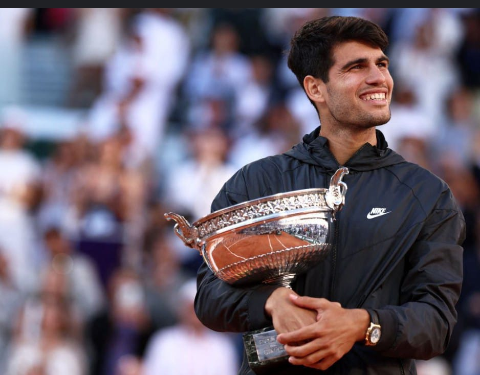 توج كارلوس ألكاراز الحائز على بطولة رولان غاروس العالمية للبطولات الأربع الكبرى لكرة القدم بعد فوزه على الألماني ألكسندر زفيريف في النهائي الثالث مجموعات لمجموعتين