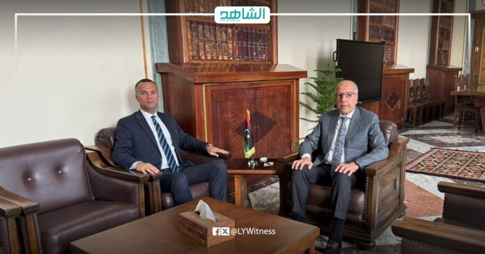 التقى محافظ مصرف ليبيا المركزي الصديق الكبير بمكتبه القائم بأعمال سفارة جمهورية مصر العربية الجديد لدي ليبيا تامر الحفني