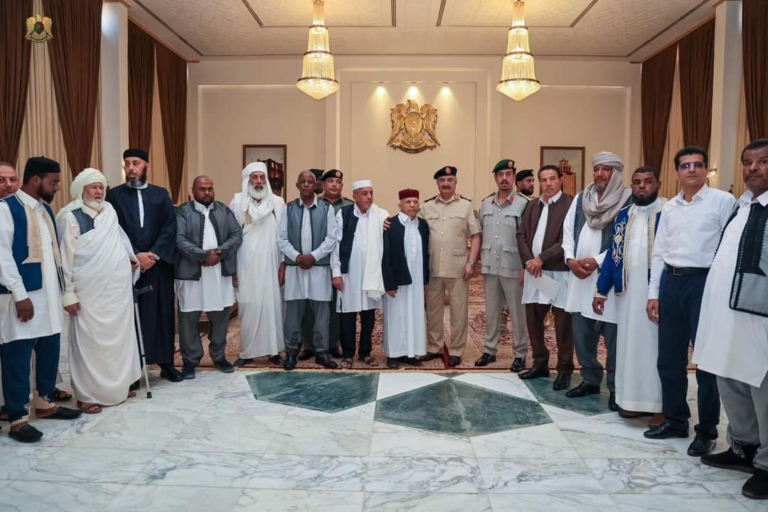المشير “حفتر” يستقبل وفداً من مشايخ وأعيان ومثقفي قبيلة الحساونة