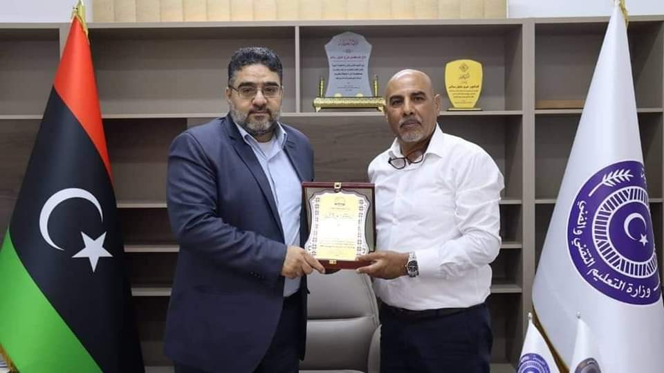استقبل وزير التعليم التقني والفني "د. فرج خليل سالم"، في مكتبه بديوان الوزارة "أ.حمد بوزريدة"، عميد كلية التقنية الطبية بنغازي