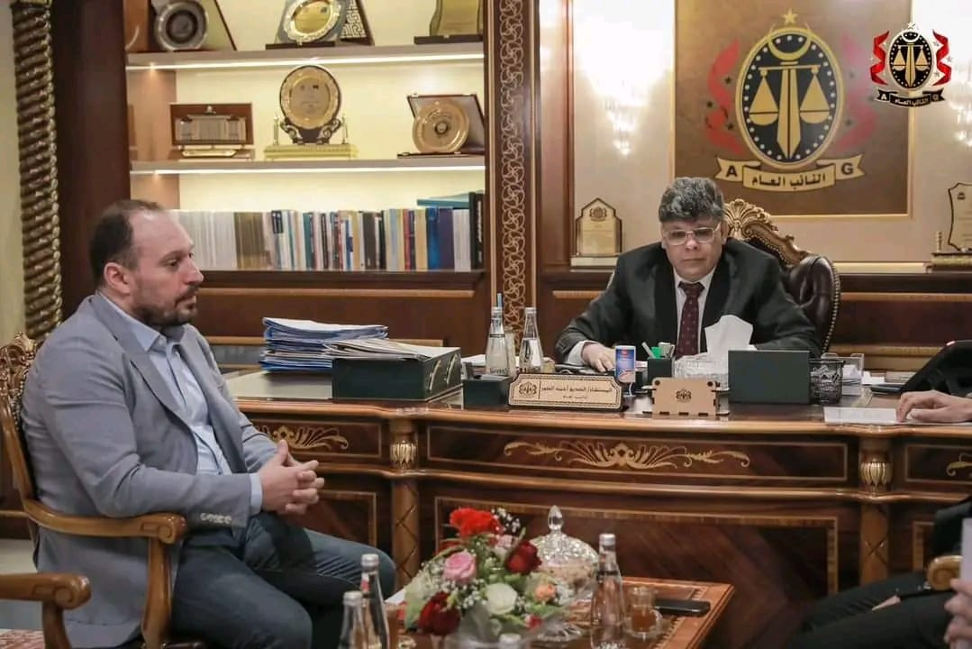 التقى النائب العام الليبي المستشار الصديق الصور يوم الثلاثاء مع رئيس الشركة الليبية للبريد والاتصالات وتقنية المعلومات القابضة محمد بن عياد