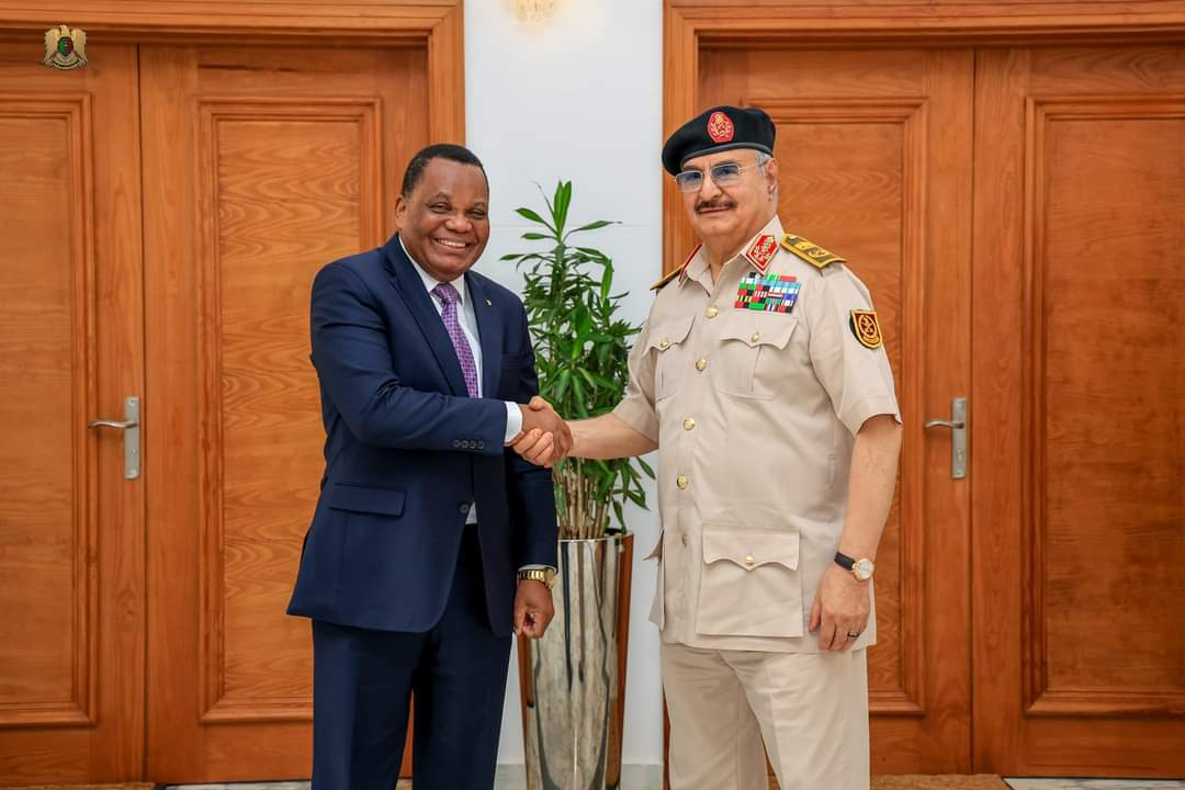 وخلال اللقاء، رحب المشير حفتر بالوفد الزائر، معبراً عن تقديره لجهود جمهورية الكونغو برازافيل ومفوضية الاتحاد الأفريقي في السعي لإيجاد حلول للأزمة الليبية