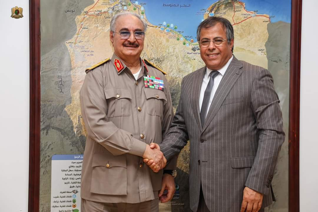 بحث القائد العام للقوات المسلحة العربية الليبية، المشير خليفة حفتر، مع رئيس مجلس الإدارة بجهاز تنفيذ وإدارة مشروع النهر الصناعي، سعد بومطاري، أوضاع منظومة النهر الصناعي.