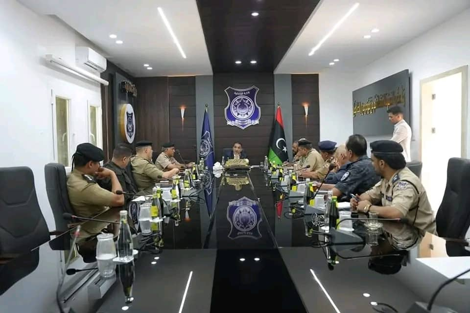 عقدَ وزير الداخلية اللواء عصام أبوزريبة يوم الثلاثاء اجتماعًا موسعًا ضمّ رؤساء أجهزة الشرطة السياحية والبحث الجنائي ومدير مكتبه ومدراء إدارات مكافحة الجرائم الاقتصادية وغسل الأموال التفتيش والمتابعة والشؤون الإدارية والتخطيط الأمني والعلاقات والتعاون الدولي بالوزارة، ومديري أمن درنة وشحات