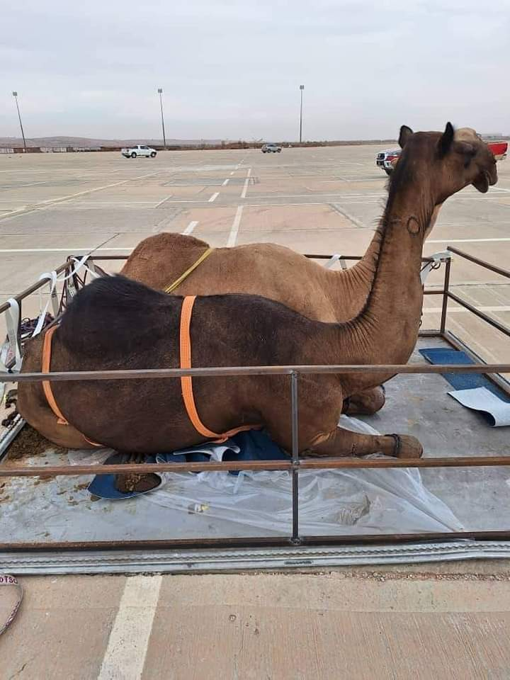 استقبلت وزارة الزراعة والثروة الحيوانية بالحكومة الليبية الإثنين شحنة من الإبل قادمة من دولة الإمارات العربية المتحدة عبر الشحن الجوي في مطار بنينا الدولي. وقد باشرت الفرق الطبية البيطرية التابعة للمركز الوطني للصحة الحيوانية بإجراء الفحوصات الطبية البيطرية اللازمة والمطابقة للشهادة الصحية المرفقة مع الشحنة، وفقاً للشروط البيطرية الليبية الخاصة باستيراد الإبل لأغراض التربية.