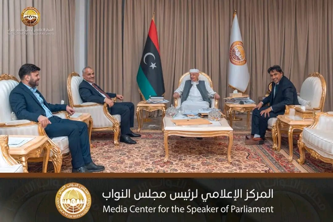 رئيس مجلس النواب وخلال اللقاء الذي عقده بمكتبه في مدينة القبة، رحّب بالسادة المحافظ و نائب المحافظ عقب أدائهم اليمين القانونية أمام مجلس النواب خلال جلسة اليوم ليباشرا مهام عملهما عقب نيلهم الثقة من مجلس النواب بالإجماع