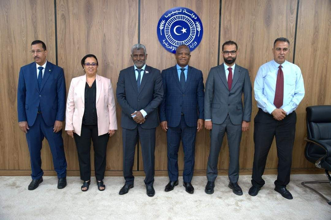 أجرى وزير الشؤون الأفريقية بالحكومة الليبية عيسى عبد المجيد، في بنغازي، مباحثات مثمرة مع وفد رفيع المستوى من الاتحاد الأفريقي يزور ليبيا هذه الأيام، وضم ممثلين عن دولتي الكونغو برازافيل وموريتانيا، إضافة إلى مبعوث الاتحاد الأفريقي للبلاد وتطرق اللقاء إلى التنسيق والترتيبات اللازمة لزيارات رسمية مرتقبة لرؤساء البلدين إلى مدينة بنغازي، مما يعكس عمق العلاقات الثنائية بين ليبيا والدول الأفريقية الشقيقة ونقل الوفد تحيات وتقدير رئيسي جمهورية الكونغو برازفيل جمهورية موريتانيا إلى القيادة العامة للقوات المسلحة، والحكومة الليبية، مؤكدا على عمق العلاقات الأخوية بين الدول الشقيقة