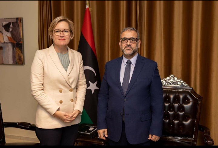 التقى رئيس المجلس الأعلى للدولة خالد المشري يوم الإثنين، سفيرةَ المملكة المتحدة لدى ليبيا كارولين هورندال بمقر إقامته في طرابلس