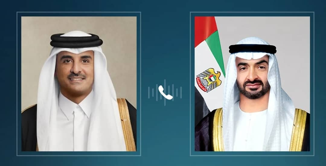 بحث الشيخ محمد بن زايد آل نهيان رئيس دولة الإمارات العربية المتحدة مع الشيخ تميم بن حمد آل ثاني أمير دولة قطر، خلال اتصال هاتفي، العلاقات الأخوية وسبل تعزيز التعاون والعمل المشترك وتنميتهما في مختلف المجالات بما يحقق المصالح المتبادلة للبلدين وشعبيهما