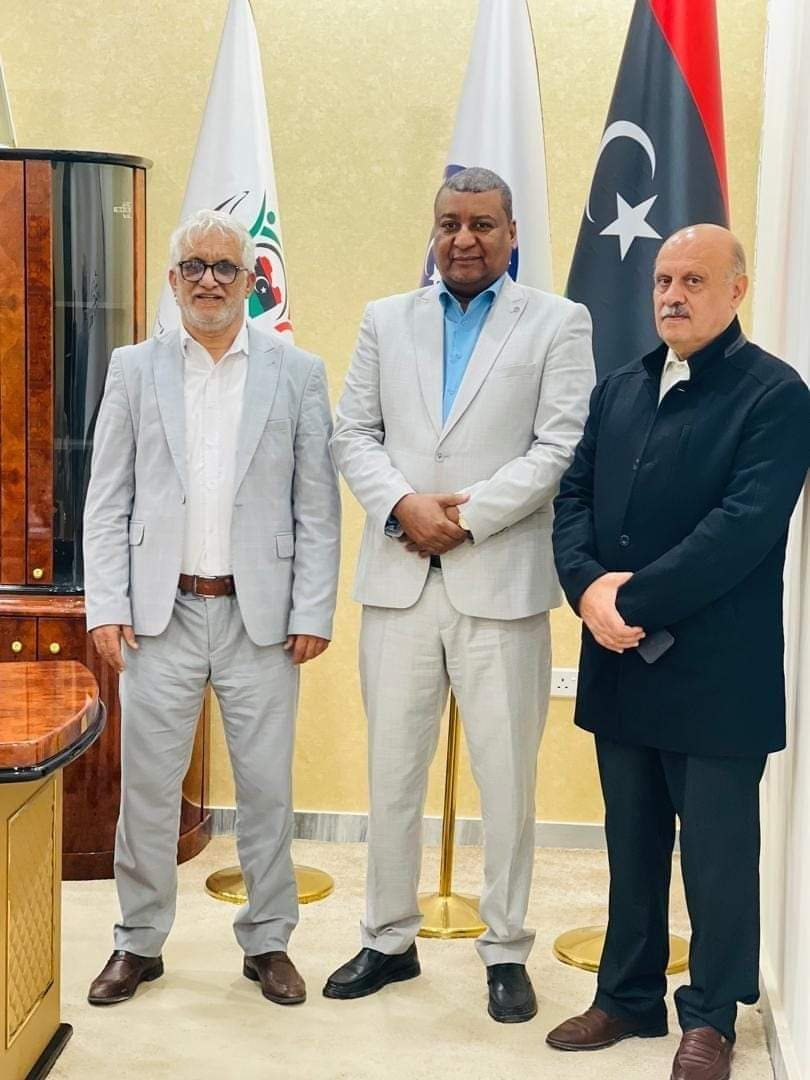 بمكتبه بمقر الوزارة بمدينة بنغازي السيد محمد الأصفر رئيس فرع برقة بالهيئة الوطنية لمشايخ وأعيان ليبيا، والسيد مفتاح المقريف المقرر العام للهيئة وبحضور السيد صالح اكريم مدير إدارة التعاون الفني بوزارة الشؤون الإجتماعية