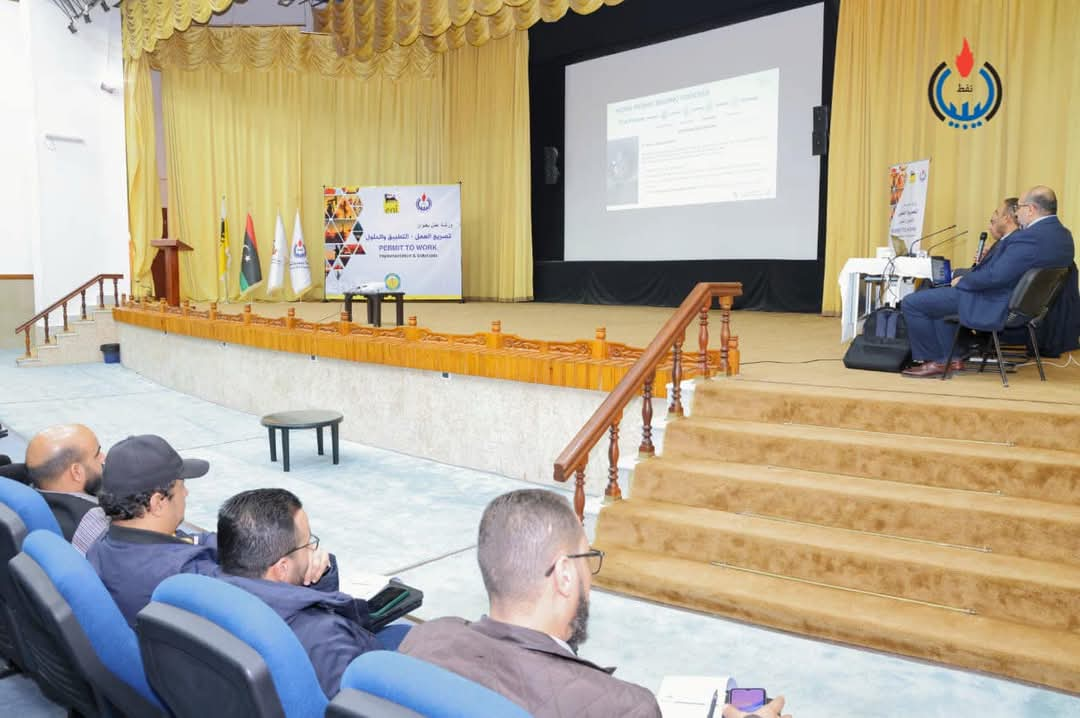 نظمت إدارة الصحة والسلامة والبيئة بالمؤسسة الوطنية للنفط وبالتعاون مع إدارة الصحة والسلامة والبيئة بشركة ايني شمال افريقيا ورشة عمل بعنوان " تصريح العمل .. التطبيق والحلول شهدت الورشة التي استضافها معهد النفط للتأهيل والتدريب، حضور أكثر من 100 مشارك من المختصين بإدارات الصحة والسلامة بالشركات النفطية، وممثلين عن شركات "أو.إم .في" و"توتال" و"ريمسا وتهدف الورشة إلي التوعية بالمخاطر ورفع مستوى حوكمة إجراءات تصاريح العمل وتحديثها والتحول الرقمي لنظام التصاريح بين الأقسام المعنية بإدارة تصاريح العمل في المواقع النفطية، في إطار اهتمام المؤسسة بالرفع من مستوى ثقافة السلامة والالتزام بإجراءات تطبيقها