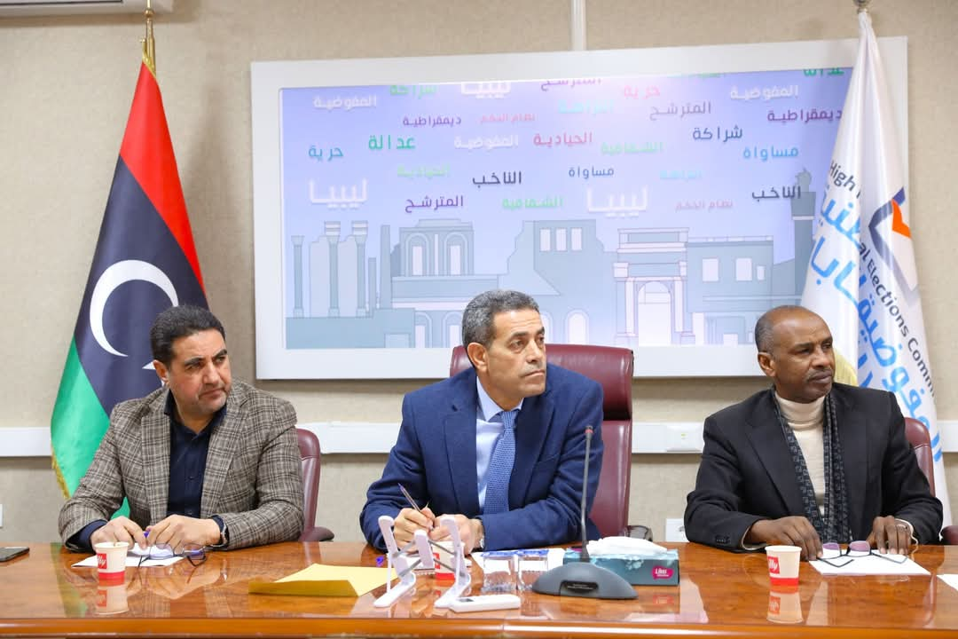 وقالت المفوضية في بيان إن الاجتماع عقد بمقر المفوضية في طرابلس، بحضور عضوي مجلس المفوضية عبدالحكيم الشعاب وأبوبكر مردة، ومديري الإدارات ورؤساء الأقسام الفنية وفريق الدعم الدولي