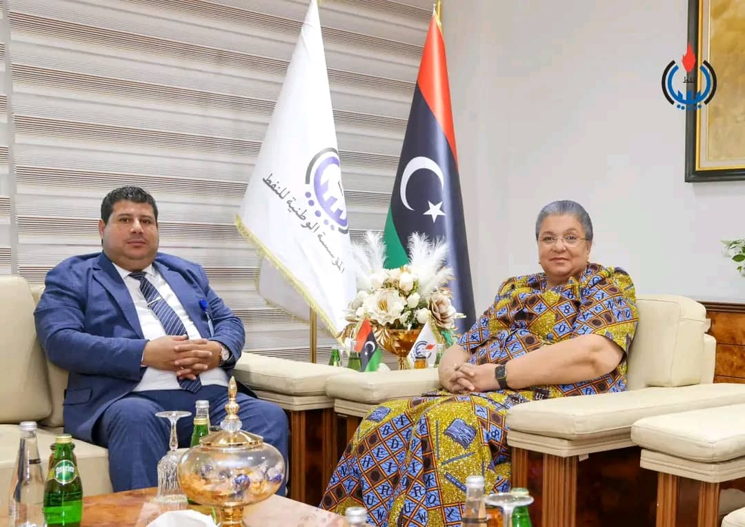 بحث رئيس مجلس إدارة المؤسسة الوطنية للنفط، مسعود سليمان، مع الممثلة الخاصة للأمين العام للأمم المتحدة ورئيسة بعثة الأمم المتحدة للدعم في ليبيا، هانا تيتيه، خطط المؤسسة الطموحة لتطوير قطاع النفط وزيادة الإنتاج