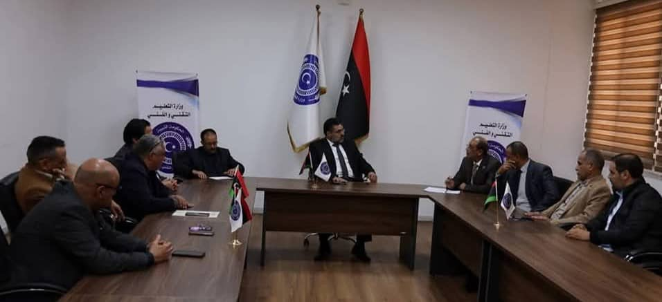 في إطار الجهود الرامية إلى تعزيز التعليم التقني والفني، عقد معالي وزير التعليم التقني والفني بالحكومة الليبية ، الدكتور فرج خليل سالم، اجتماعًا افتراضيًا، بحضور مدراء الإدارات بالوزارة، حيث استضاف فريق شركة سيرتيبورت (المدير الإقليمي لمنطقة أوروبا والشرق الأوسط، والمدير الإقليمي لمنطقة شمال أفريقيا والشرق الأوسط) Certiport Pearson، المتخصصة والرائدة في مجال البرامج التعليمية والتدريبية