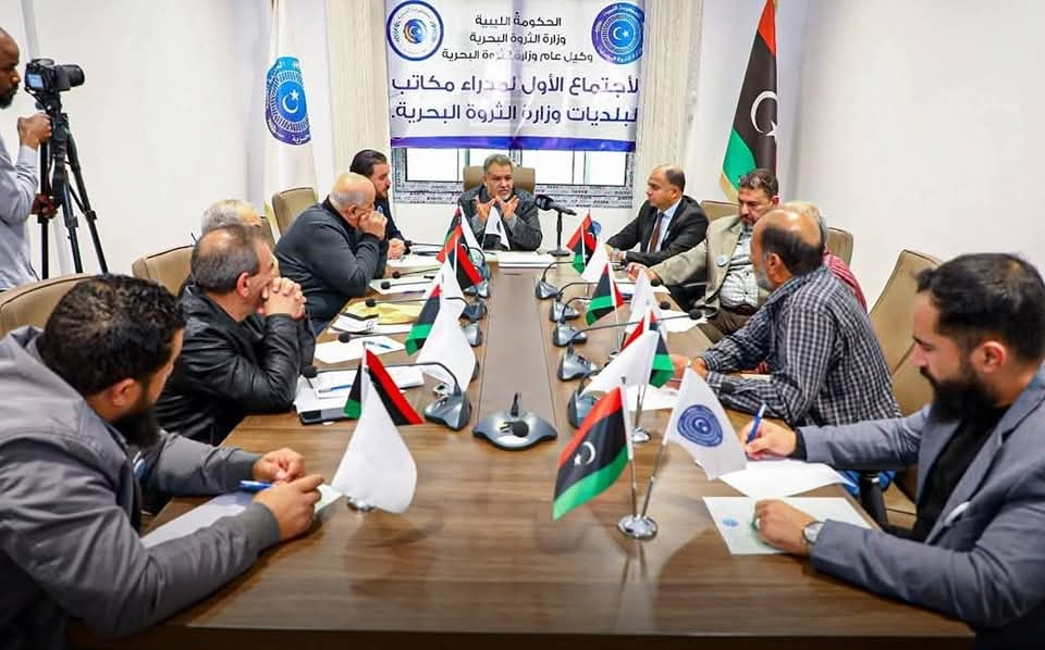 عقد وكيل وزارة الثروة البحرية بالحكومة الليبية، سعد ناجي بمقر ديوان وزارة الثروة البحرية بمدينة بنغازى، اجتماعاً موسعاً مع مديري مكاتب الوزارة في البلديات تم خلال الاجتماع مناقشة آلية تنظيم سير العمل بالمكاتب ومراجعة التحديات والصعوبات التي تواجهها، بهدف إيجاد حلول فعّالة لمعالجتها صرح وكيل وزارة الثروة البحرية السيد سعد ناجي إن قطاع الثروة البحرية يمثل جزءاً حيوياً وأساسيًا في الاقتصاد الوطني، وهو يشمل مكونات متعددة تتراوح بين الصيد البحري، وتنمية الموارد البحرية، وحماية البيئة البحرية، التي تشكل أساساً مهمًا لاستدامة هذا القطاع وأكد على تفعيل دور وزارة الثروة البحرية في مختلف البلديات ونحن في وزارة الثروة البحرية ملتزمون بالعمل الجاد والفعّال لتحقيق هذا الهدف