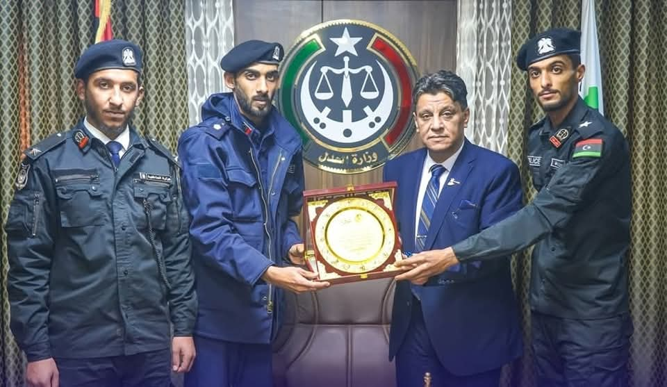 في إطار تعزيز الشراكة المؤسسية وترسيخ قيم التعاون والتكامل بين الجهات الرسمية، مجموعة من عناصر وزارة الداخلية يكرمون وزير العدل بالحكومة الليبية، المستشار خالد مسعود المدير ، وذلك تقديراً لجهوده المخلصة وتعاونه البنّاء مع الجهات التابعة لوزارة الداخلية بالمنطقة