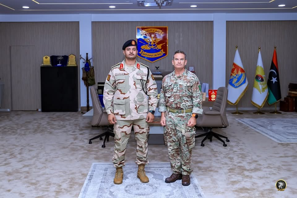 التقى رئيس أركان الوحدات الأمنية التابعة للقيادة العامة للقوات المسلحة الفريق ركن خالد حفتر، بالملحق العسكري البريطاني في ليبيا، العقيد مات كيترر