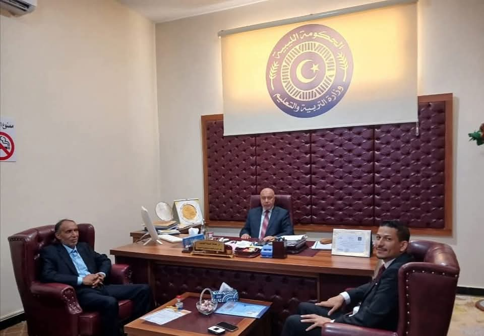 استقبل وزير التربية والتعليم، المهندس جمعة خليفة الجديد بمكتبه بديوان الوزارة، عميد بلدية زلة، في لقاء خُصّص لمناقشة أوضاع القطاع التعليمي داخل نطاق البلدية