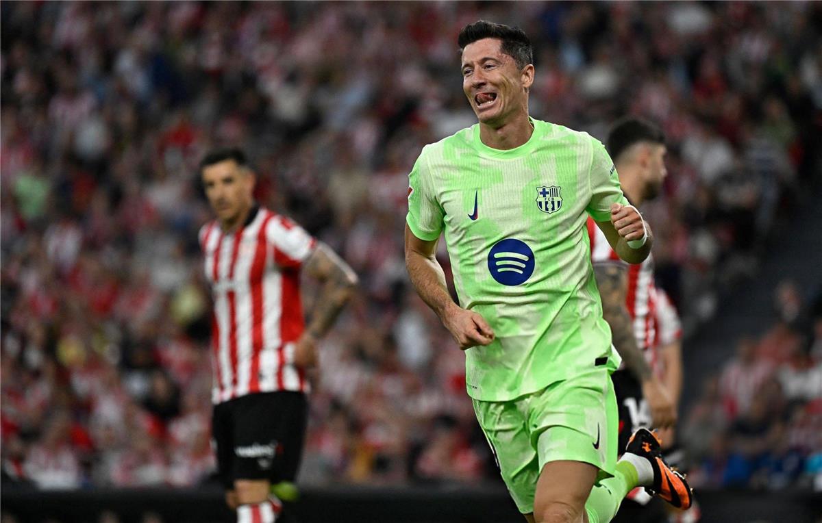 حقق برشلونة، بطل الليغا، فوزاً كبيراً على مضيفه أتلتيك بيلباو 3-صفر في الجولة الأخيرة من الدوري الإسباني لكرة القدم وسجل كل من روبرت ليفاندوفسكي (14 و17) وداني أولمو من ركلة جزاء (90+4) أهداف المباراة وأنهى المهاجم البولندي موسم الليغا بـ27 هدفاً