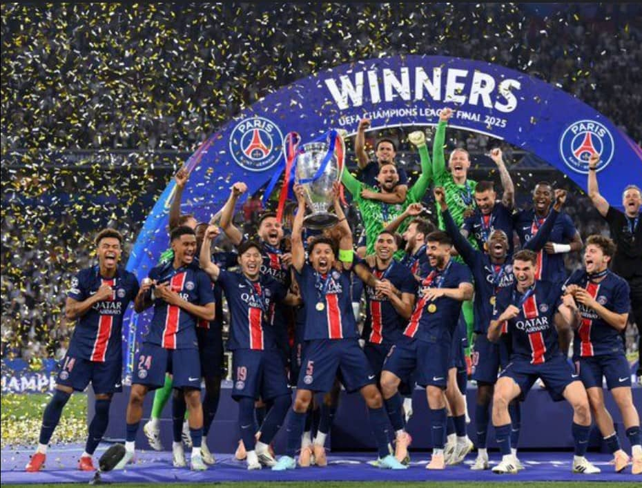توّج باريس سان جيرمان الفرنسي بلقب دوري أبطال أوروبا للمرة الأولى في تاريخه عقب تغلبه الكاسح في النهائي الكبير على إنتر الإيطالي بخمسة أهداف دون رد في المباراة النهائية التي استضافتها مدينة ميونيخ الألمانية
