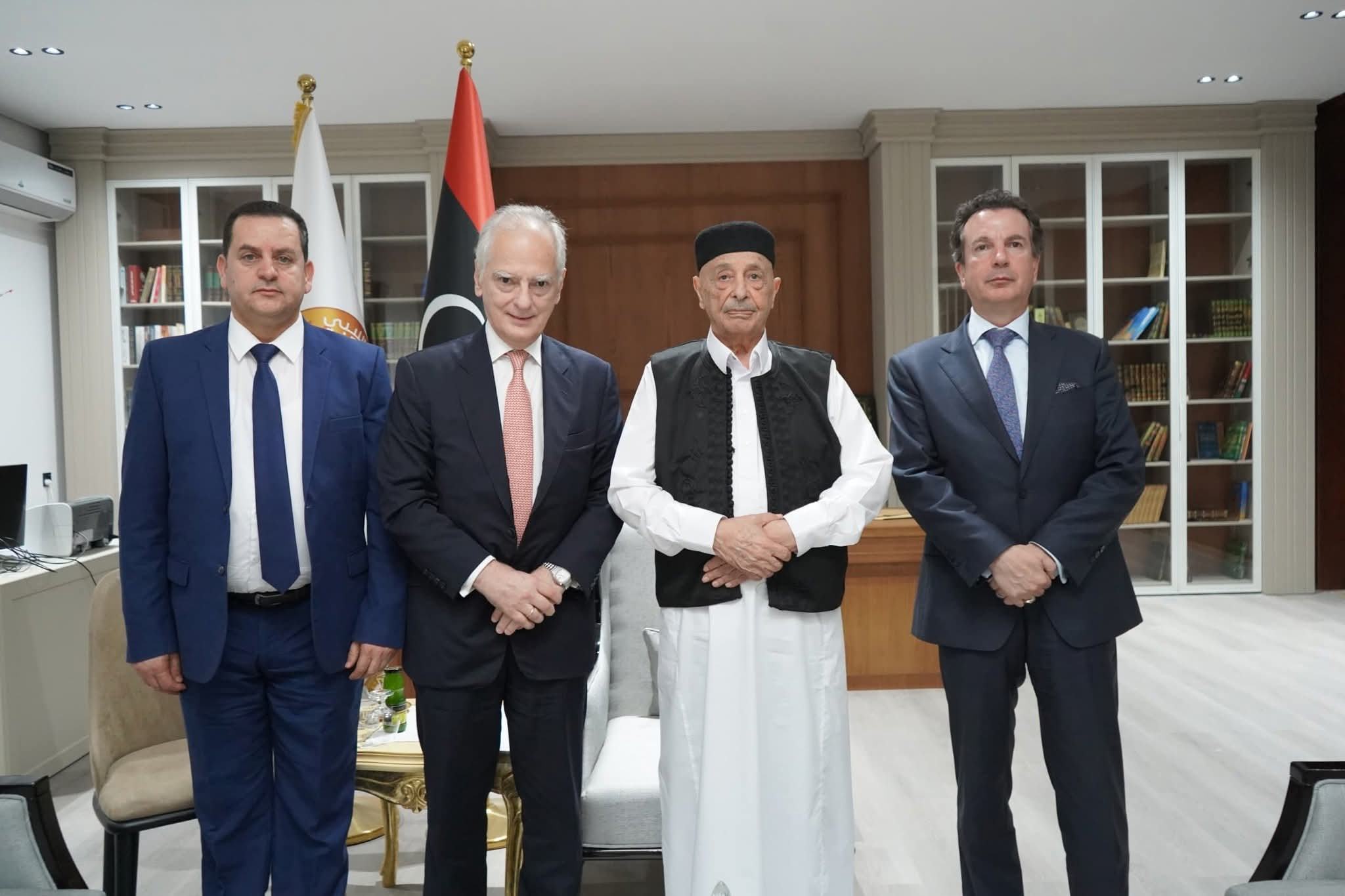 التقى فخامة رئيس مجلس النواب المستشار عقيلة صالح، سعادة السفير اليوناني لدى ليبيا السيد نيكولاوس غاريليذيس رفقة القنصل العام اليوناني السيد أغابيوس كالوغنوميس، بحضور الوزير المفوض بالشؤون الخارجية والتعاون الدولي بالحكومة الليبية د. عبد الهادي الحويج