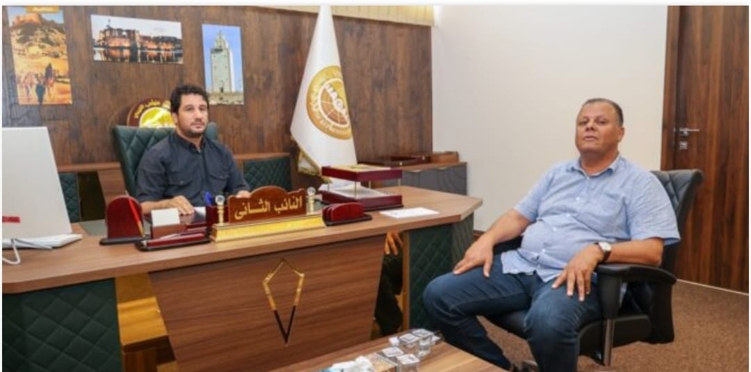 التقى النائب الثاني لرئيس مجلس النواب الأستاذ مصباح دومة بمكتبه بمقر ديوان مجلس النواب في مدينة بنغازي رئيس لجنة الدفاع والأمن القومي بمجلس النواب طلال ميهوب