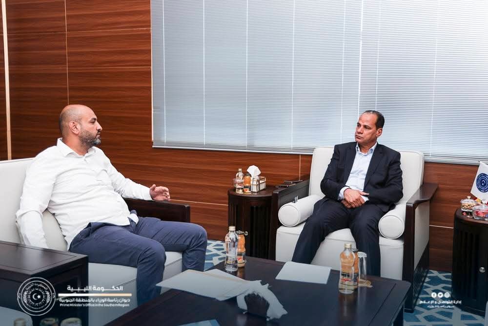في ظلّ المساعي الحثيثة لدعم القطاع الصحي في المنطقة الجنوبية، التقى معالي نائب رئيس مجلس الوزراء عن المنطقة الجنوبية ووزير الدفاع بالحكومة الليبية الدكتور أحميد حومة، بمكتبه بقاعة قصر فزان بمدينة سبها، بمدير عام مستشفى سبها لطب وجراحة العيون، الدكتور اللافـي محمد اللافـي