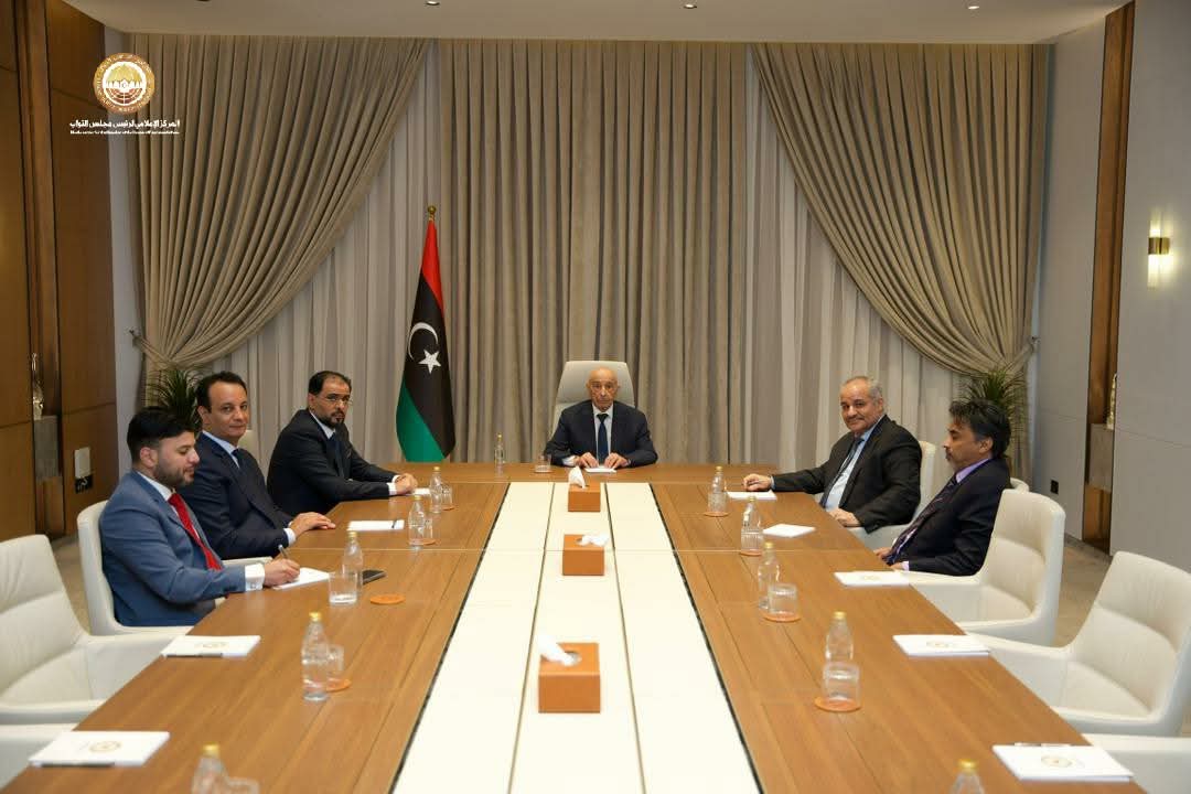 عقد فخامة رئيس مجلس النواب المستشار عقيلة صالح، اجتماعا موسعا، بالسادة محافظ مصرف ليبيا المركزي ناجي عيسى ونائبه مرعي البرعصي، ورئيس مجلس وزراء الحكومة الليبية د. أسامة حماد، ومدير عام صندوق التنمية وإعادة إعمار ليبيا المهندس بالقاسم حفتر فخامته، وخلال اللقاء الذي عقده في مدينة بنغازي، أكد على ضرورة دعم مسيرة الإعمار الذي يسير بخطوات مدروسة وفق رؤية استراتيجية واضحة تهدف إلى إعادة بناء البنية التحتية المتهالكة في كافة القطاعات وتحريك عجلة التنمية في الدولة الليبية، عبر عدد من المشاريع التنموية الضخمة، مثمناً دور الحكومة الليبية في دعم التنمية والإعمار كما أكد فخامة رئيس مجلس النواب دعمه الكامل لبرامج الصندوق وخططه، داعيا لأن تشمل خطط الصندوق كافة ربوع البلاد من جانبه أشاد السيد المحافظ بالجهود المبذولة من أجل تحقيق التنمية الشاملة وتلبية تطلعات المواطنين نحو الاستقرار والازدهار وبناء الدولة الليبية