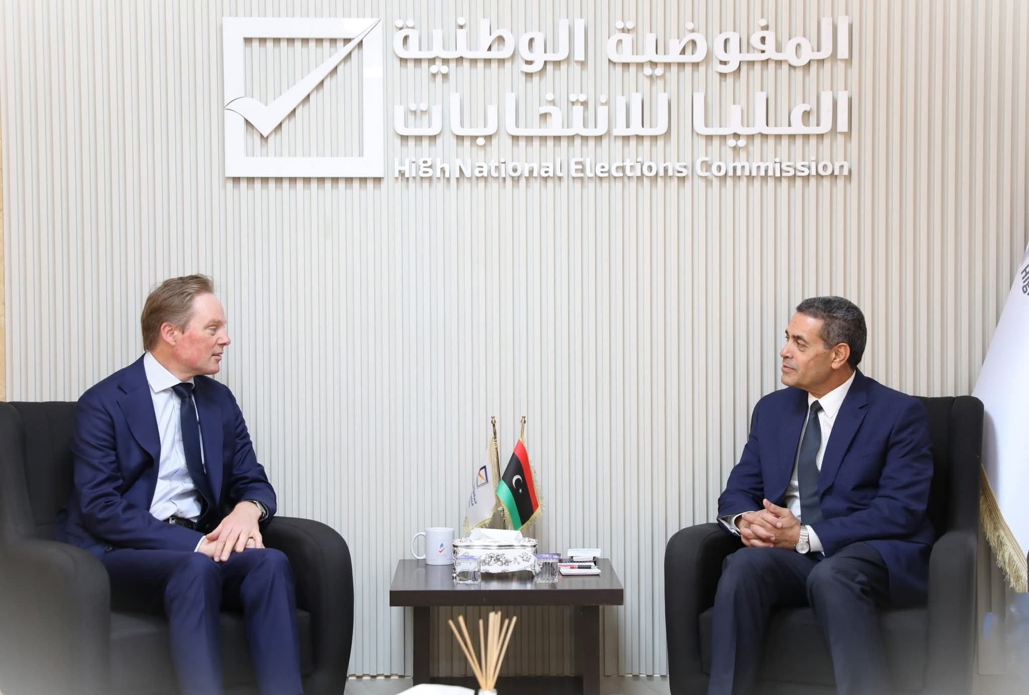 استقبل رئيس مجلس المفوضية، الدكتور عماد السايح، بمقر المفوضية في طرابلس، سفير مملكة هولندا لدى ليبيا السيد أريان يولينريف، والوفد المرافق له وتناول اللقاء مناقشة نجاح انتخابات المجالس البلدية (المجموعة الثانية)، والجهود التي بذلتها المفوضية في تنظيمها وفق أعلى معايير الشفافية والنزاهة. كما استعرض الطرفان سبل تعزيز التعاون والدعم الفني المقدم من قبل مملكة هولندا، خاصة في مجالات بناء القدرات وتطوير الخبرات الانتخابية وفي هذا السياق، قدّم السفير الهولندي تهانيه للمفوضية على نجاح العملية الانتخابية، مشيداً بالكفاءة التي أظهرتها في إدارتها، ومؤكداً حرص بلاده على دعم جهود المفوضية ومساندة المسار الديمقراطي في ليبيا