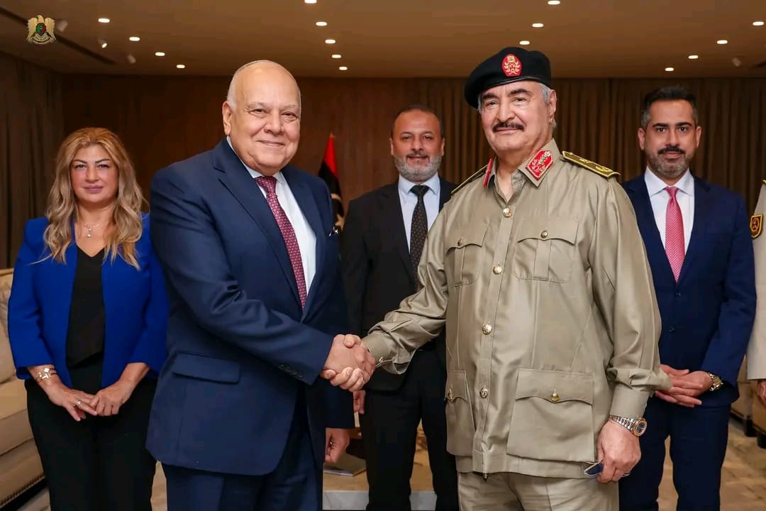 استقبل القائد العام للقوات المسلحة، المشير أركان حرب خليفة بالقاسم حفتر، الأمين العام لاتحاد الجامعات العربية عمرو عزت سلامة، والوفد المرافق له، إلى جانب رئيس جامعة بنغازي عزالدين الدرسي