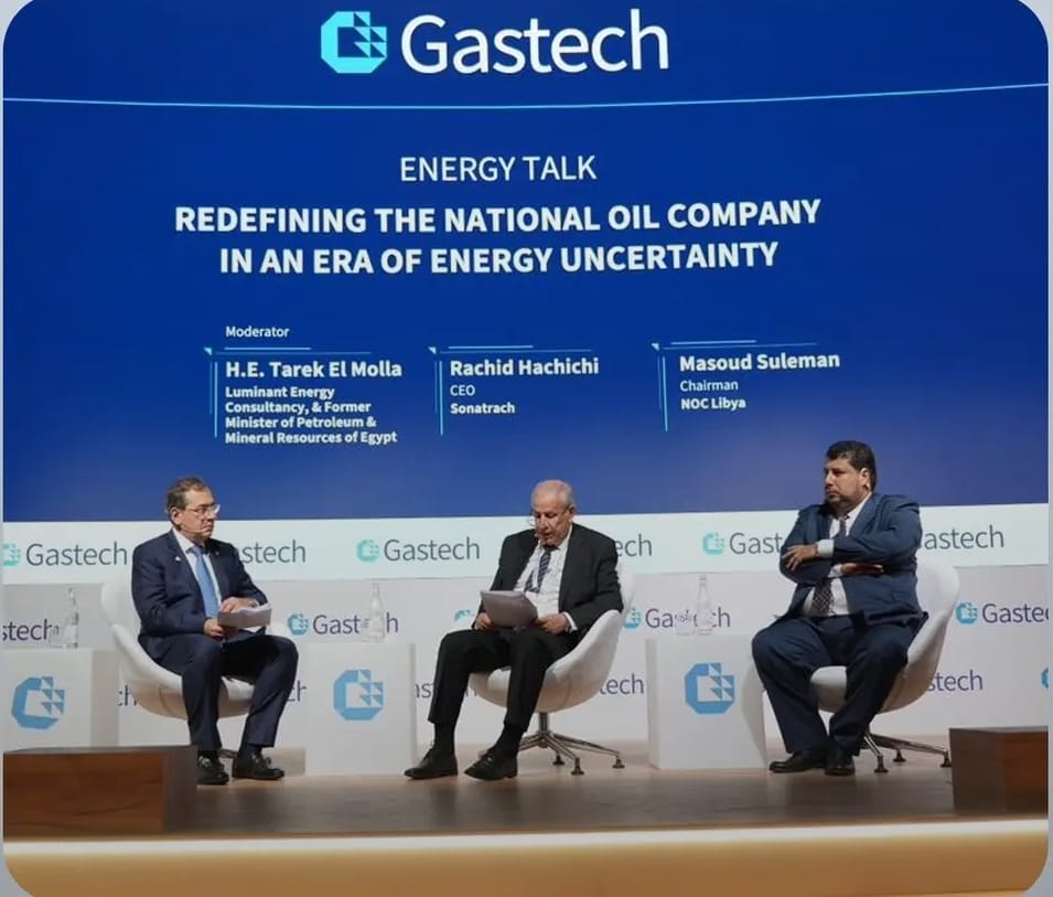 شارك رئيس مجلس إدارة المؤسسة الوطنية للنفط، المهندس مسعود سليمان في إثراء جلسة حوارية حول مستقبل الطاقة في شمال أفريقيا في ظل التحديات الراهنة وضمان إمدادات الغاز للسوق العالمية، ضمن مشاركته في مؤتمر تقنيات الغاز المنعقد في ميلانو
