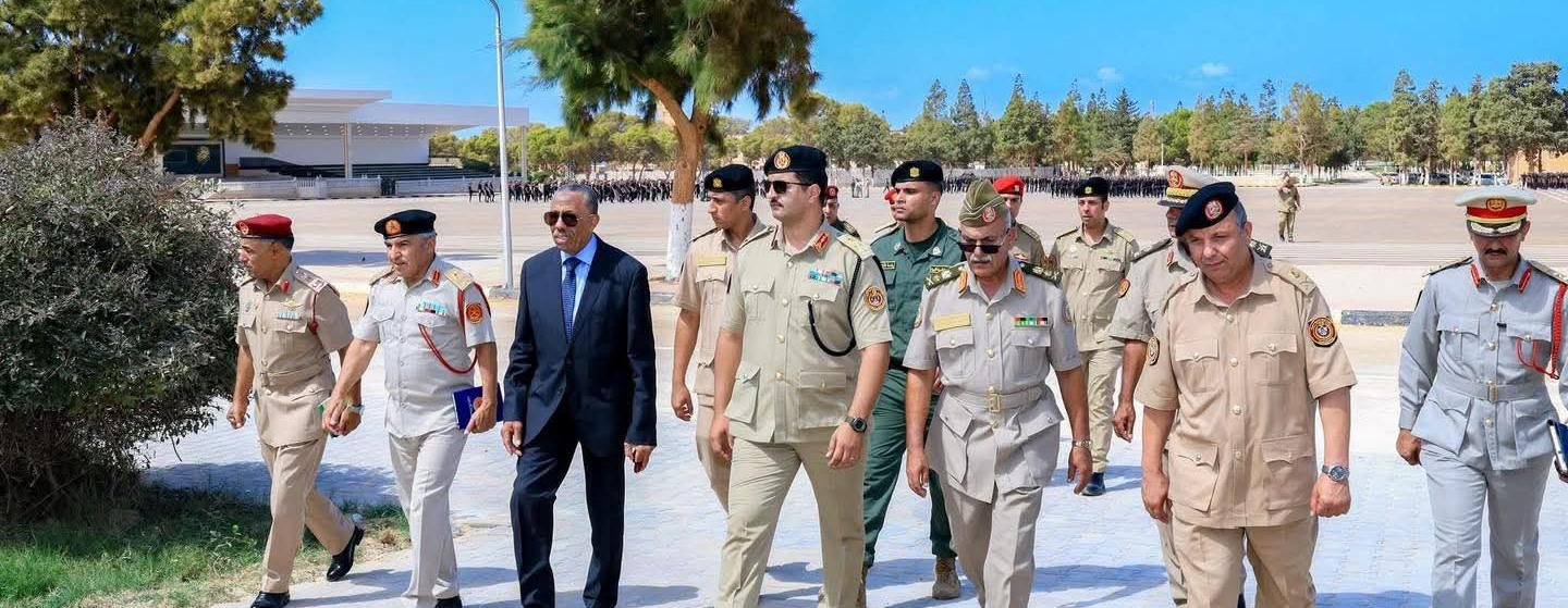 رئيس الأركان العامة للقوات المسلحة، الفريق أول ركن خالد حفتر يجري زيارة تفقدية إلى الكلية العسكرية، حيث تابع سير العملية التعليمية والتدريبية واطّلع على برامج التأهيل بكافة التخصصات وأشاد رئيس الأركان العامة بمستوى الأداء والانضباط داخل الكلية، مؤكدًا أنها تمثل الركيزة الأساسية لبناء قوات مسلحة قوية كما أصدر الفريق أول ركن خالد حفتر تعليماته بضرورة الارتقاء بالمستوى وتحديث وسائل التدريب لضمان أعلى مستويات الجاهزية والكفاءة للخريجين