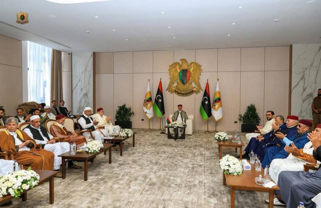 استقبل القائد العام للقوات المسلحة، المشير أركان حرب "خليفة أبوالقاسم حفتر"، مشايخ وأعيان وحكماء القبائل بالمنطقة الشرقية والوسطى والجنوبية الشرقية، في مدينة المشير خليفة حفتر العسكرية، وذلك بحضور رئيس الحكومة الليبية، "أسامة حماد"، ورئيس الأركان العامة، الفريق أول ركن "خالد حفتر"