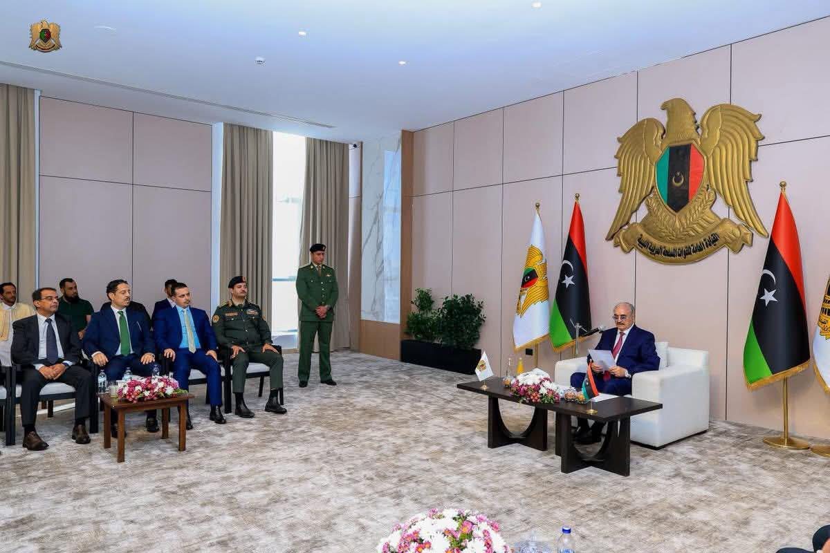 القائد العام للقوات المسلحة، المشير أركان حرب “خليفة أبوالقاسم حفتر”، يستقبل مشايخ وأعيان وحكماء مدينة الزنتان