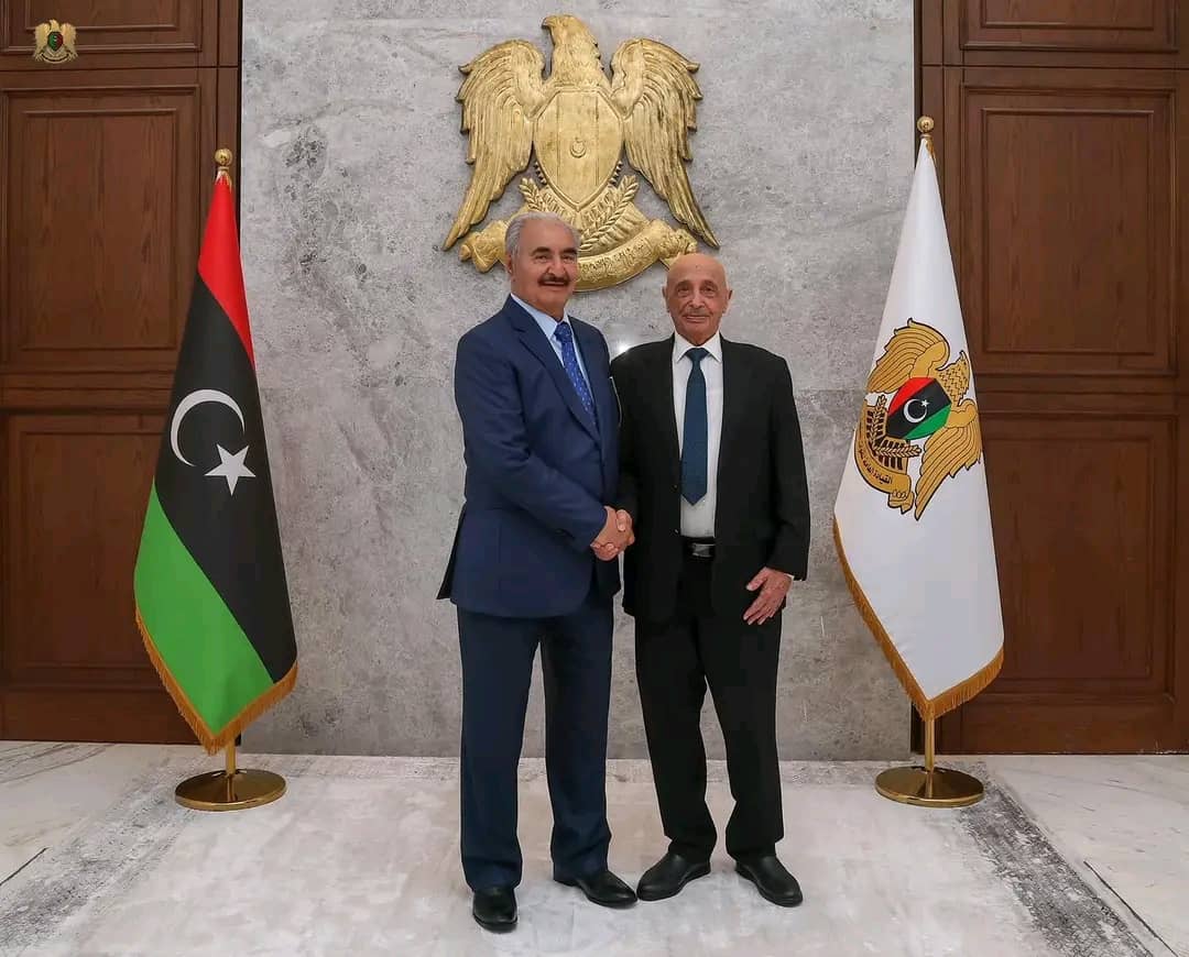 استقبل القائد العام للقوات المسلحة، المشير أركان حرب خليفة أبوالقاسم حفتر، رئيس مجلس النواب المستشار عقيلة صالح، وخلال لقاء عقد بمقر القيادة العامة في مدينة بنغازي